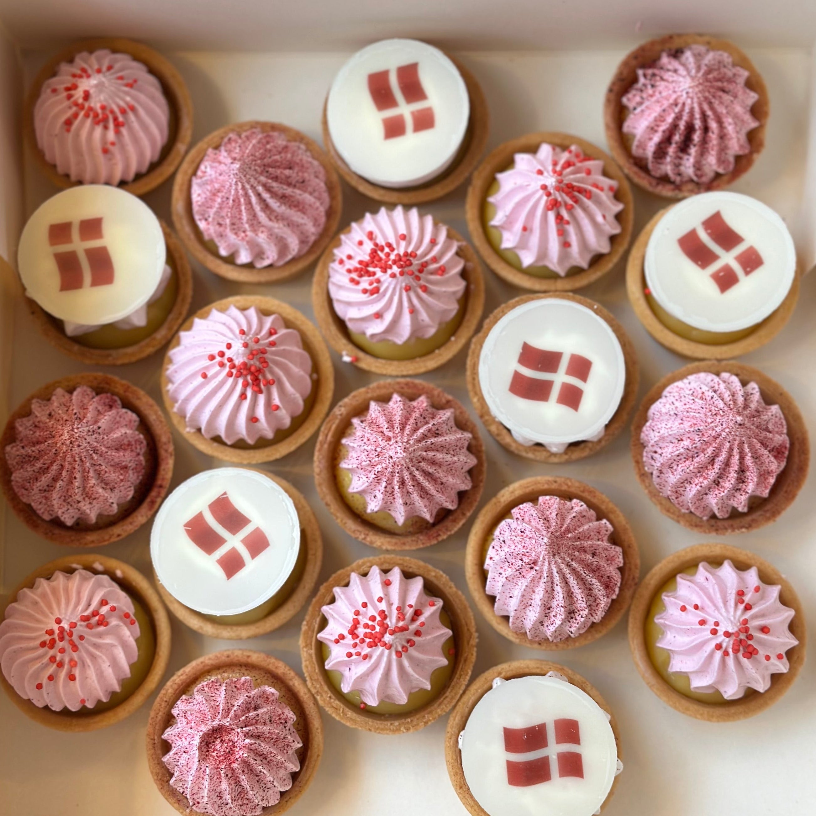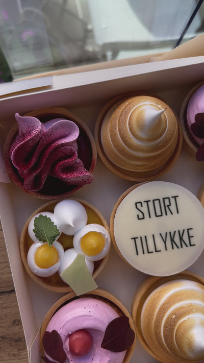 - Sammensatte æsker med vores signatur mini tærter eller mini kager.